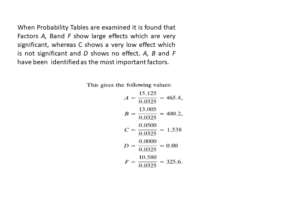 The final stage is to identify the factors which are showing large effects. In the example this was done using an F-test for